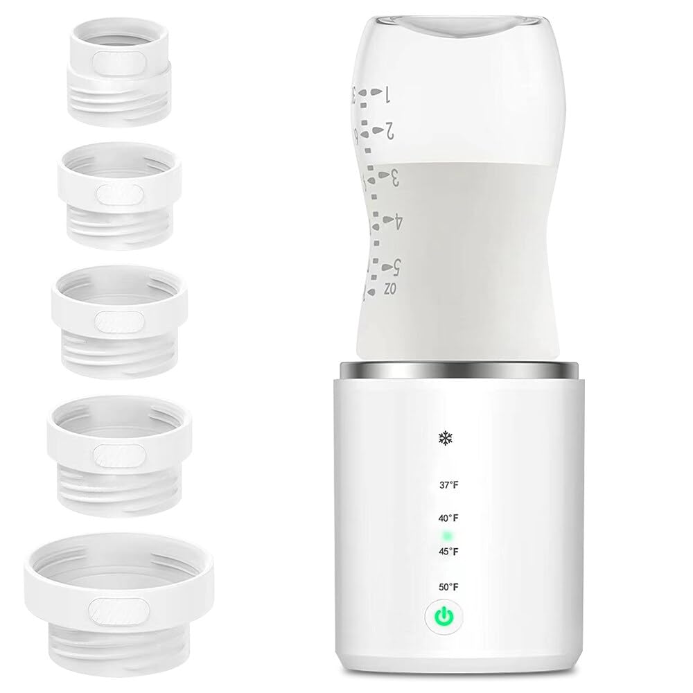 BYTEBAZAAR Flaschenwärmer Baby Unterwegs, Tragbarer Flaschenwärmer für unterwegs, Babyflaschenwärmer mit Temperatur, 4 Adapters, Aufladbar Über USb, Tragbarer Flaschenwärmer für Reisefreundlich
